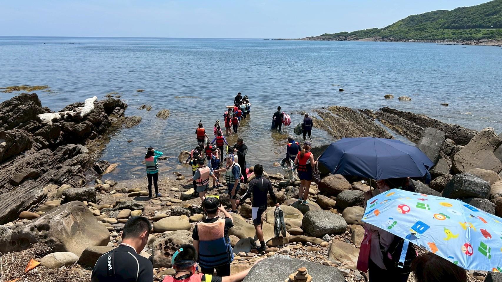 再換上裝備、潛進海中,實際認識卯澳灣的海底生態樣貌,也體驗當地海女海男的水下採集作業!